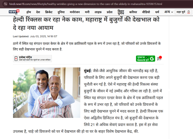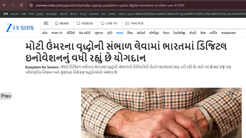We’re pleased to share that Healthy Wrinkles has been covered by Zee 24 Taas for our growing work in senior care.